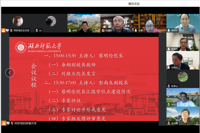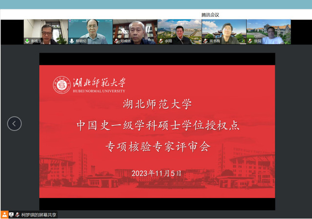 本次会议通过线上举行,共设两项议程。第一阶段,由蔡明伦院长主持。余翔校长致辞,介绍了我校中国史硕士学位授权点评估工作开展情况,并对专家组表示感谢。刘继兵院长对我校评估工作的进展情况、硕士学位授权点建设基本情况做了简要介绍。第二阶段,由彭南生副校长主持专家组核验。核验小组认真审读《湖北师范大学中国史学位授权点基本状态信息表》,听取了蔡明伦院长对我院中国史学位授权点建设情况的专题汇报,审阅了相关材料。专家指出,我校中国史专业培养目标清晰,办学定位准确,特色鲜明;管理规范,形成了较为完善的质量保障体系;人才培养质量较高。同时专家组也指出了学位点建设中的不足并提出改进建议。