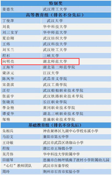 我院向明亮老师荣获2023年度“荆楚好老师”