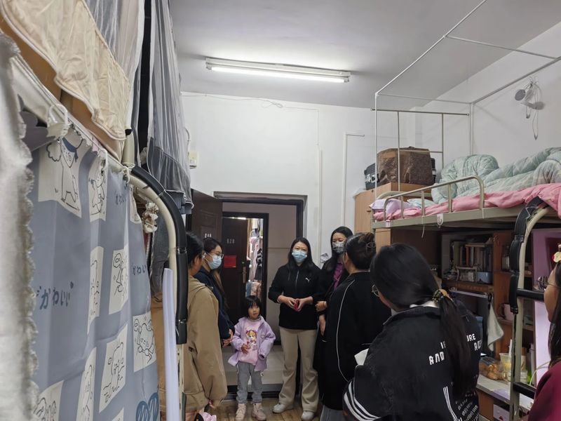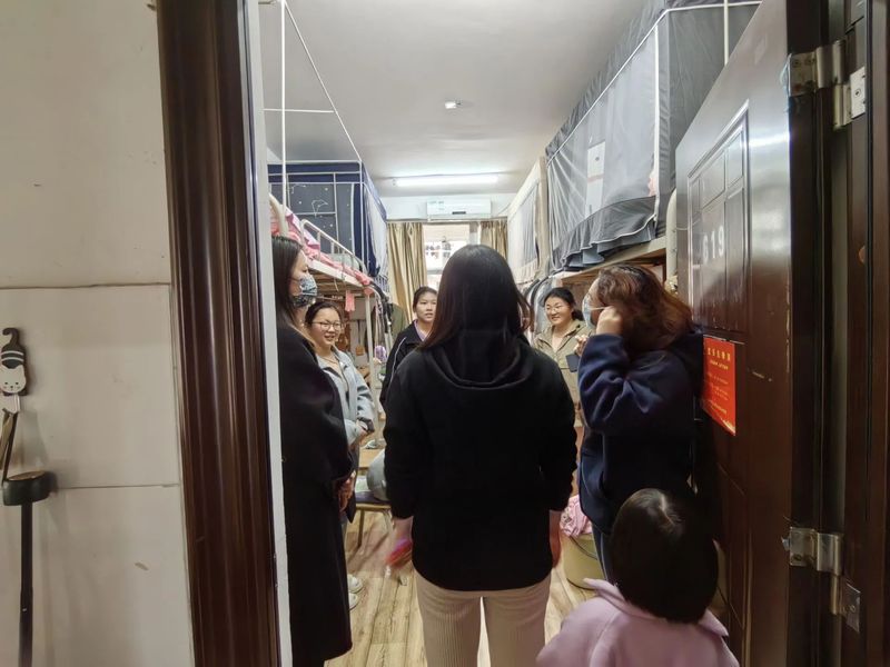 在宿舍走访的过程中,老师们首先观察了同学们的寝室环境;其次深入了解学生们的学习情况,询问了学生们学习和生活上遇到的问题,倾听学生们的想法并与之分享方法经验;最后老师叮嘱大家要保持良好作息习惯,同时在春夏换季间留心衣物加减,预防流感、注意身体健康。