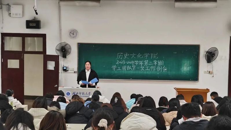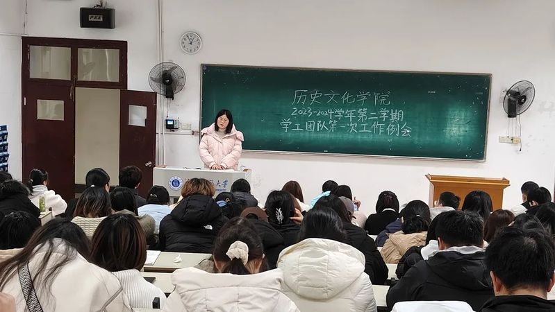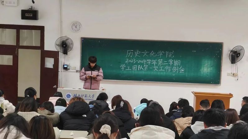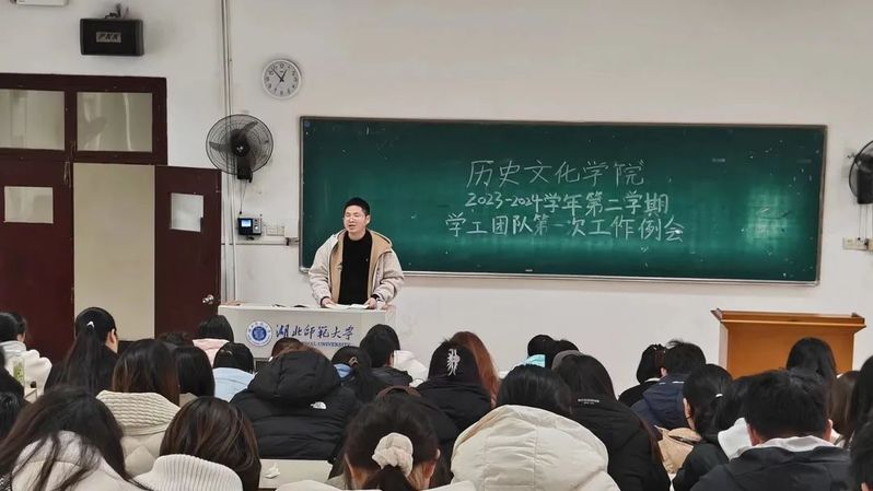 3月6日中午12:20,历史文化学院第四十六届学工团队在教育大楼 1j11召开了本学期第一次工作例会,出席本次会议的有党委副书记黎哲老师,学生辅导员王雅菲老师,郑甜甜老师,陈雪咪老师,刘源恩老师以及第四十六届学工团队全体成员。