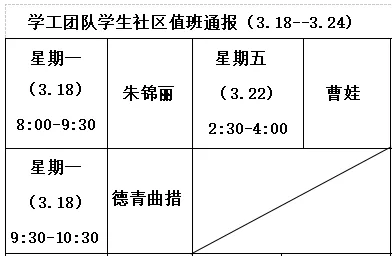 为进一步加强学生社区管理,我院学工团队近日深入学生社区展开值班工作。上一周由自委会负责值班工作,在值班工作中发现,部分同学未按时履行值班职责。现做如下通报: