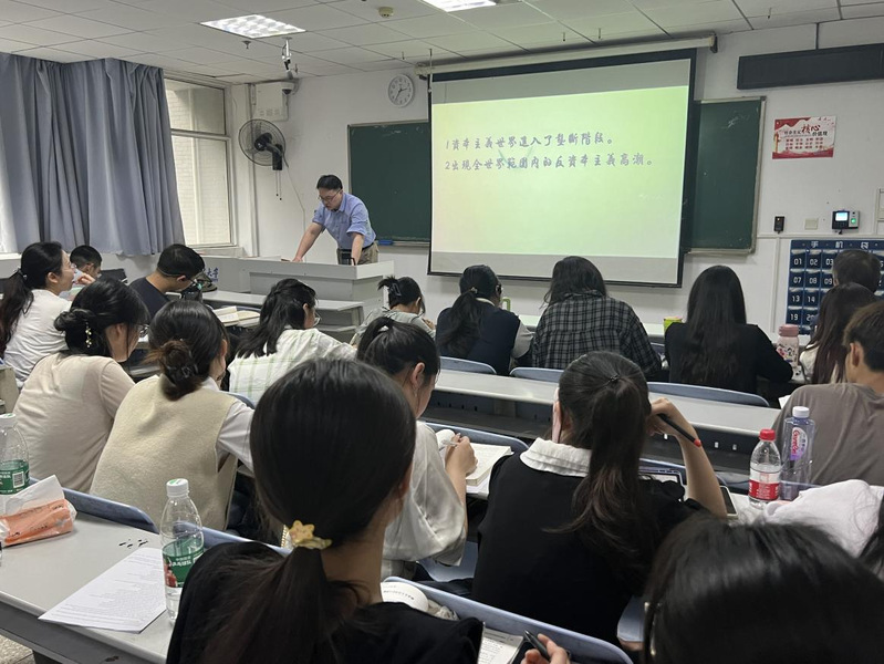 在课上,周鑫老师为2202班同学讲解了《世界现代史》有关“十月革命”的相关内容。周鑫老师用形象、生动的语言深入浅出的为学生讲授了十月革命爆发的时代背景、列宁主义诞生的原因及内容等。让同学们进一步加深了对俄国通过十月革命走上共产主义道路的深刻历史原因有了清醒的认识。