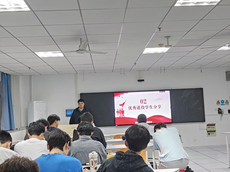 其次,由优秀退役学生代表刘源恩学长进行了军旅故事分享,并热情地回答同学们的问题。经过学长的分享,同学们深刻认识到了军旅生活的多姿多彩,打破了以往对单调军旅生活的刻板印象。