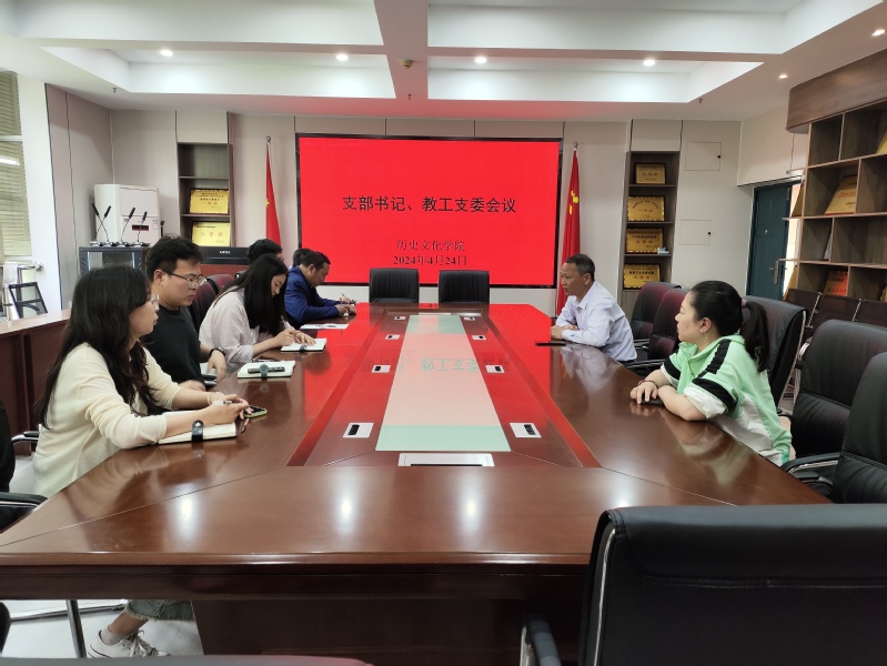 为增强政治功能和组织功能,锻造坚强有力的基层党组织,充分发挥基层党组织战斗堡垒作用,2024年4月24日,历史文化学院在人文楼21A301会议室召开了支部书记、教工支委会议。参加本次会议的有历史文化学院党委书记李涛、党委副书记黎哲、教工支部全体委员、学生支部全体委员,会议由李涛主持。