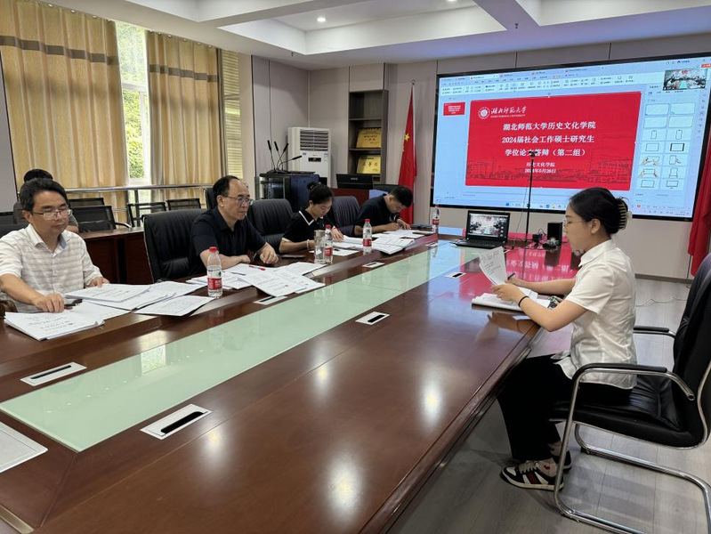 2024年5月26日下午,我院在人文楼21A301会议室及21A305教师举办“社会工作专业2024届硕士研究生学位论文答辩会”。本次答辩采用线上线下相结合的方式进行,答辩共分为两个小组,中南财经政法大学谭明方教授、华中农业大学万江红教授分别担任两个答辩委员会答辩主席,历史文化学院蔡明伦教授、李涛副教授等8位老师担任答辩委员会成员。