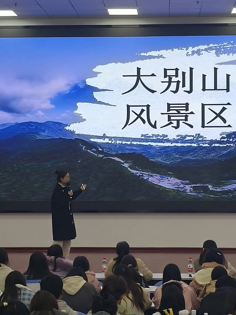 比赛伊始,旅游系主任杨庆老师发表了热情洋溢的讲话。杨庆老师强调了导游大赛在培养学生专业素养和实践能力方面的重要性,鼓励选手们充分展示自己的才华,赛出风格、赛出水平,并预祝本次大赛取得圆满成功。