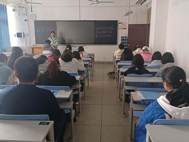 为更好地完成下阶段的工作任务,明确各部门本学期工作计划,加强各部门间的沟通交流。2月27日下午十四时,历史文化学院学生自律委员会于教育大楼1215教室召开了本学期第一次工作例会。此次会议由秘书部张漫琪主持,历史文化学院学生自律委员会主席团及各部门成员积极参加。