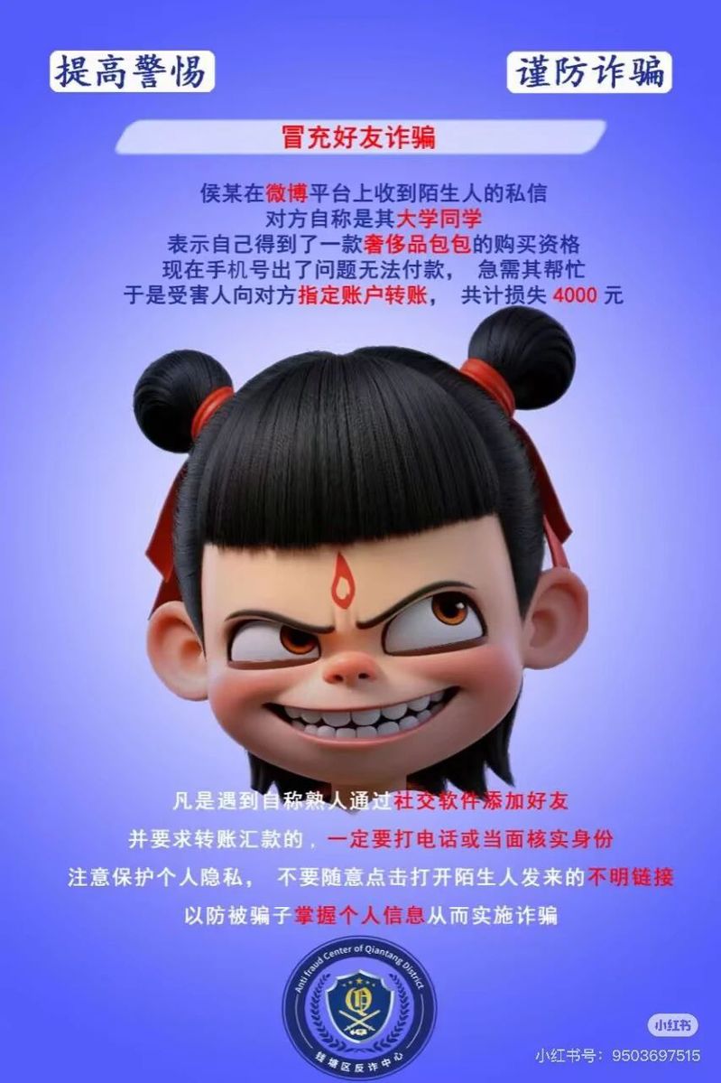 对于在网络上找你借钱的好友,一定要打电话核实身份。网购在官方平台进行,出了问题尽量不要脱离平台进行交流。骗子会变换千万种手段来窃取你的信息一定要重视自己的信息安全!在和陌生人的交流中不随便透漏个人的信息,更不要随便填写调查问卷。当陌生人对你过分热情时,应保持警惕,物品不要轻易离身,以免上当受骗。