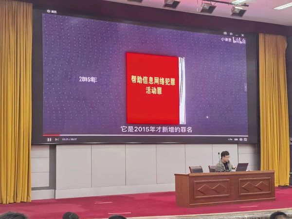 康博仁老师更是以校园真实案例为切入点,详细还原了诈骗分子的诈骗手段和话术。他分享很多诈骗分子常潜伏于学生日常学习生活中,利用学生们的安全意识不高、防范意识不强和社会经验不足等薄弱点,以“兼职暴利”“捷径通道”等诱饵实施精准围猎。同时,他逐条解读了有关于帮助信息网络犯罪活动罪(帮信罪)的具体法律条文。并强调根据法律法规,明知他人利用信息网络实施犯罪而提供技术支持或帮助,会带来严重后果。
