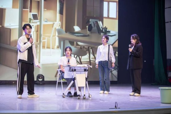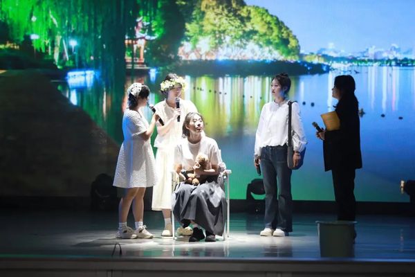优异成绩的取得,离不开团队的精心筹备与辛勤付出。自赛事启动以来,历史文化学院高度重视,组建了由专业教师指导、学生会心理部成员为主力的创作团队。在剧本创作阶段,团队成员深入调研大学生心理现状,结合真实案例反复打磨剧本,力求将心理健康教育主题与艺术表现形式完美融合;在排练过程中,演员们克服课业压力,利用课余时间进行高强度训练,从台词表达、肢体语言到情感传递,每一个细节都经过反复雕琢。指导教师全程跟进,从专业角度提出修改建议,确保作品的思想性与艺术性。决赛现场,《压力星球》凭借扎实的剧本架构、演员们富有感染力的表演、精美的舞台设计,为观众带来一场震撼心灵的视听盛宴。特别是剧中张奋斗在慈湖畔的独白,将角色从迷茫、挣扎到觉醒、成长的心理转变展现得淋漓尽致,生动诠释了作品“与压力共舞,向成长致敬”的核心主题。作品所传递的积极向上的价值观,不仅展现了历史文化学院学子良好的精神风貌,更彰显了学院在心理健康教育领域的创新探索。
