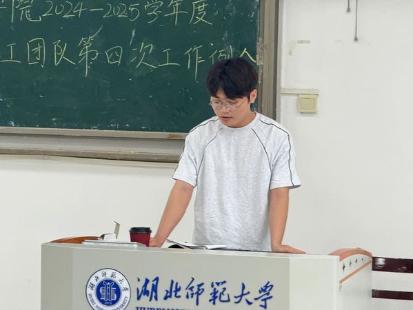 5月15日下午,历史文化学院学工团队2024—2025学年第二学期第四次工作例会在人文楼21AT05召开。出席本次会议的有辅导员郑甜甜老师、康博仁老师及第四十七届学工团队全体成员。学工团队成员围绕工作汇报、换届部署、经验交流及近期重点工作展开深入研讨,旨在总结成果、优化流程、传承经验,为后续工作奠定坚实基础。