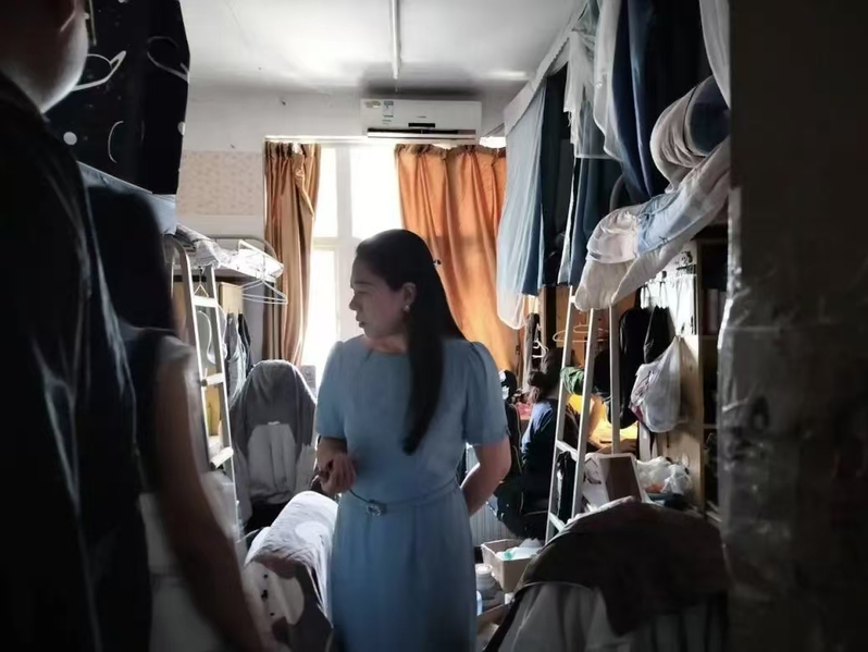 党委副书记黎哲满怀关切,逐一走访每一间寝室,不放过任何一处细节。对于当时无人却摆放着诸多贵重物品的寝室,她多次拨打电话,认真确认寝室人员与物品归属,并耐心叮嘱同学们外出时务必“人走门关”,保障财物安全。这份细致入微的关怀,让同学们在即将离开校园之际,仍能感受到家一般的温暖。