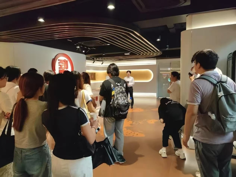走进劲牌企业展馆,讲解员系统地介绍了劲牌六十余年的发展历程,重点剖析了企业在不同阶段履行社会责任的实践。学生们通过品鉴产品、观看生产线中药数字化提取技术及文化展厅里的“阳光奖学金”公益项目,深入了解到劲牌如何通过技术创新和公益项目践行经济责任与慈善责任并重的理念,将社会工作的助人自助理念融入企业管理,有效增强了员工的归属感。