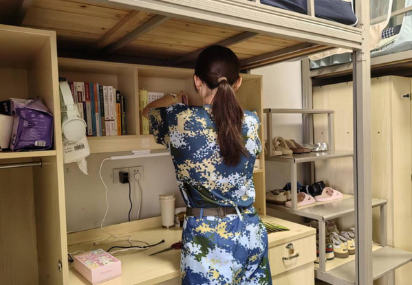 随后,各寝室长返回宿舍组织整理工作。孙老师、魏老师与教官分组进入各寝室,逐一指导、亲自示范。同学们纷纷表示,通过老师与教官的悉心教学,不仅掌握了内务整理的实用技能,更深刻体会到军队纪律的严格与自我管理的重要性。