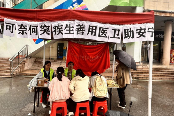 为增强在校学生对社会医疗知识的了解,减少疾病风险,10月16日,数学与统计学院青大队联合历史文化学院、物理与电子科学学院、城市与环境学院青大队于琼林苑门口开展了主题为“无可奈何突疾生,善用医卫助安宁”的摆点活动,旨在通过实用医疗知识科普与技能实操,为学生们筑起健康防护墙。
