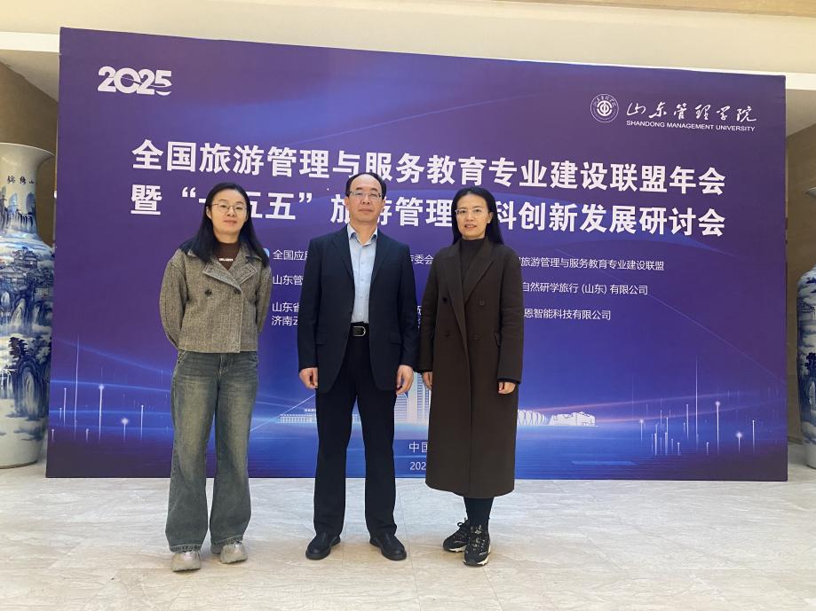 11月7日至9日,2025年全国旅游管理与服务教育专业建设联盟年会暨 “十五五”旅游管理学科创新发展研讨会在山东管理学院顺利召开。我院院长蔡明伦、旅游系主任杨庆与旅游系教师吴丹一行3人受邀参会,与来自全国42所高校及相关单位的专家学者、行业代表齐聚一堂,围绕旅游管理学科建设、人才培养、产教融合等核心议题展开深度交流。