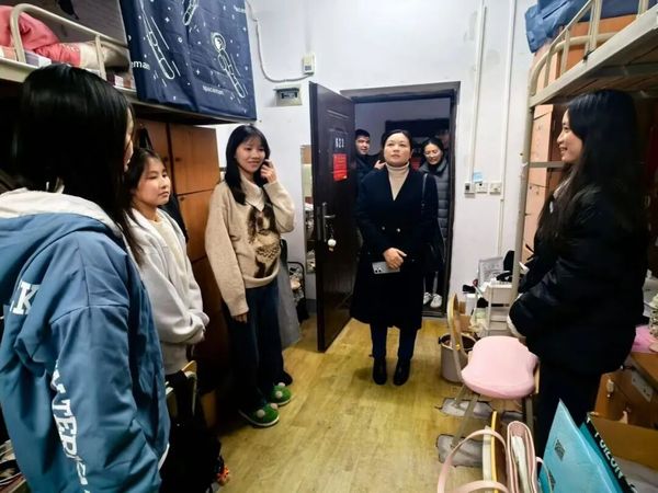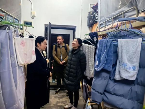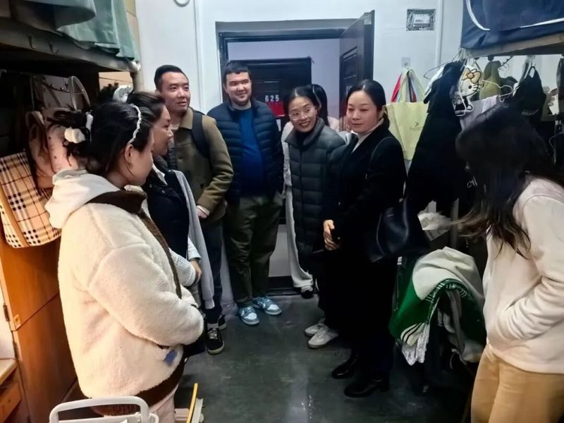 走访过程中,老师与同学们亲切交谈,细致询问大家的学习进度、生活适应情况以及近期遇到的困难,重点关注了13栋23级、22级本科女学生的住宿体验和冬季生活需求。