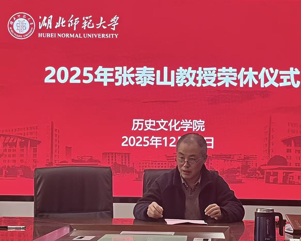 桃李芬芳,薪火相传。12月11日下午,湖北师范大学历史文化学院在人文楼A座301会议室为张泰山教授隆重举行了“荣休仪式”。学院全体教职工欢聚一堂,共同致敬张泰山教授三十余载教育生涯的坚守与奉献。会议由院长蔡明伦主持。