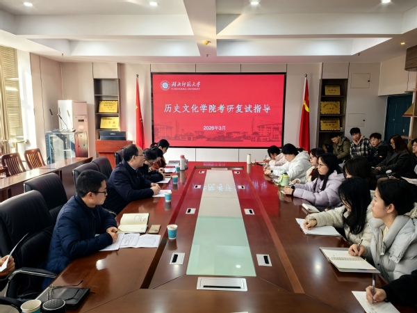 为切实做好2026届毕业生考研复试备考服务工作,精准对接学生复试需求,有效提升学生考研复试竞争力。3月13日上午,历史文化学院2026届研究生复试指导会在人文楼21A301会议室顺利召开。学院领导班子成员、毕业班班主任、教师代表及考研过线学生参会,会议由学院党委副书记蒋雨旺主持。
