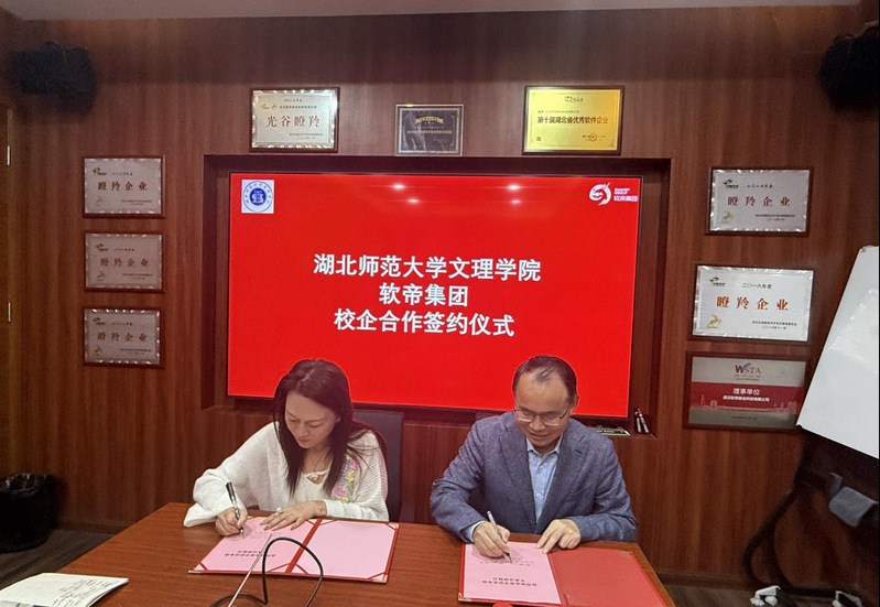 10月30日上午10时,我校副校长王胜国率队前往武汉软帝联合科技有限公司,出席专业实习基地签约仪式。随行人员包括教务部副部长胡敏、计算机与信息学院院长程永山、教务部实践教学科科长屈琬婷。